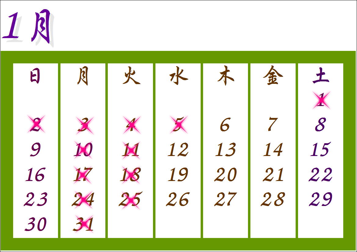 1月の定休日のお知らせ